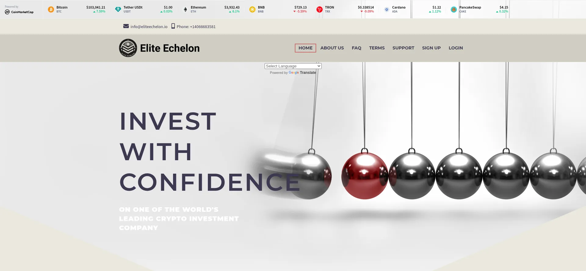 Eliteechelon.io operates an investment fraud platform promoting deceptive financial opportunities with unrealistic return promises designed to steal investor funds.