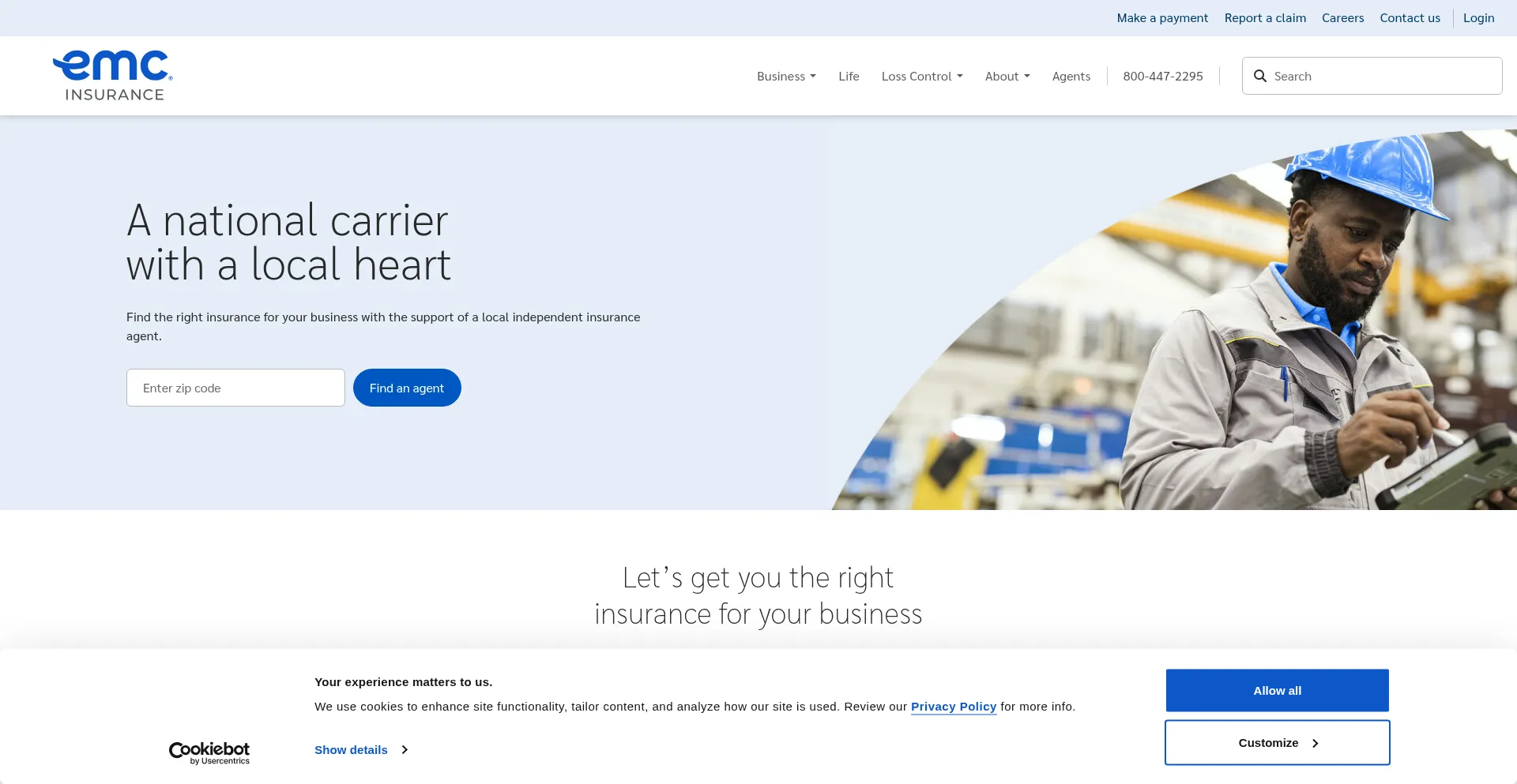 The website implements cookie consent mechanisms in compliance with privacy regulations such as GDPR or CCPA. This demonstrates that emcinsurance.com adheres to data protection standards and provides users with control over personal data collection practices.