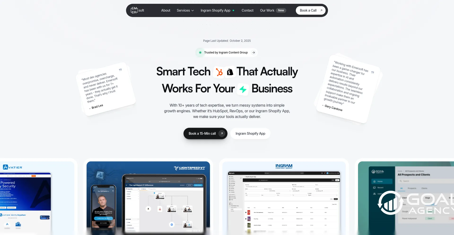 Emersoft simplifies growth with smart tech - from the Ingram Shopify App powering 100+ bookstores to HubSpot CRM setups and RevOps automations.