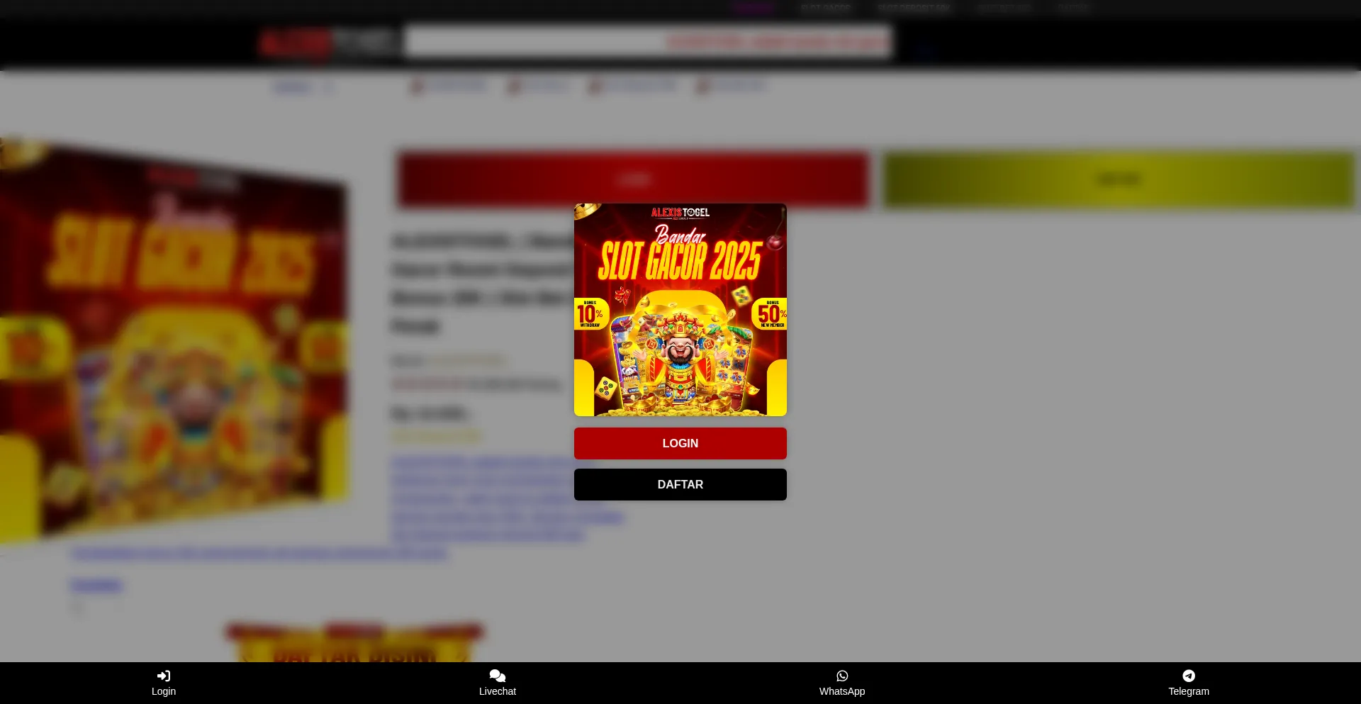 ALEXISTOGEL | Bandar Slot Gacor Resmi Deposit 50K Bonus 25K | Slot Bet 200 Perak