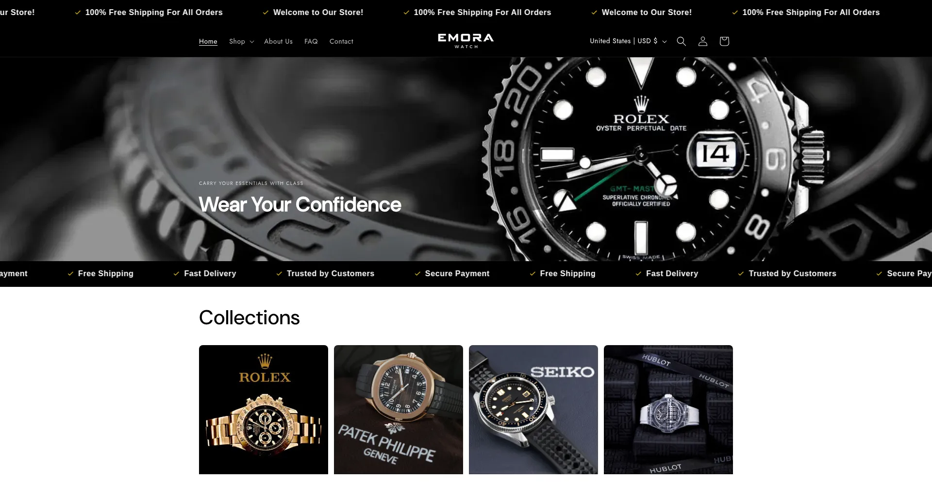 Our analyzer determines that website emorawatch.com is using Shopify CMS. Shopify is a popular e-commerce platform, powering around 4.4% of websites globally.