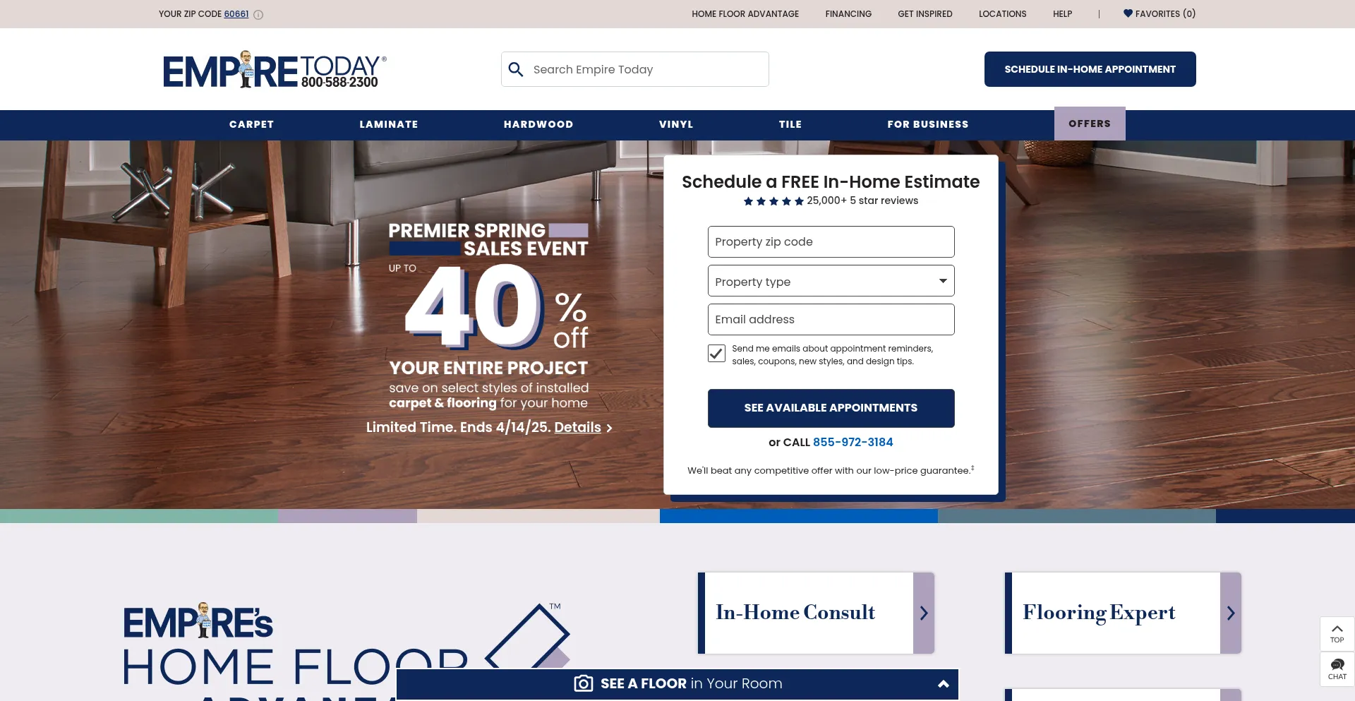Get new flooring without the hassle. Call or text to schedule a free in-home estimate, shop samples at home, and get professional installation from Empire Today.