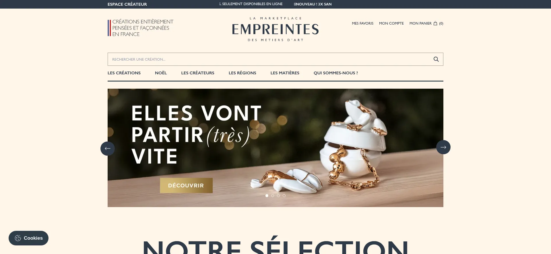 EMPREINTES, marketplace et concept store des métiers d’art. Pièces uniques, façonnées en France, dans des ateliers d’art. Céramique, déco, sculptures…