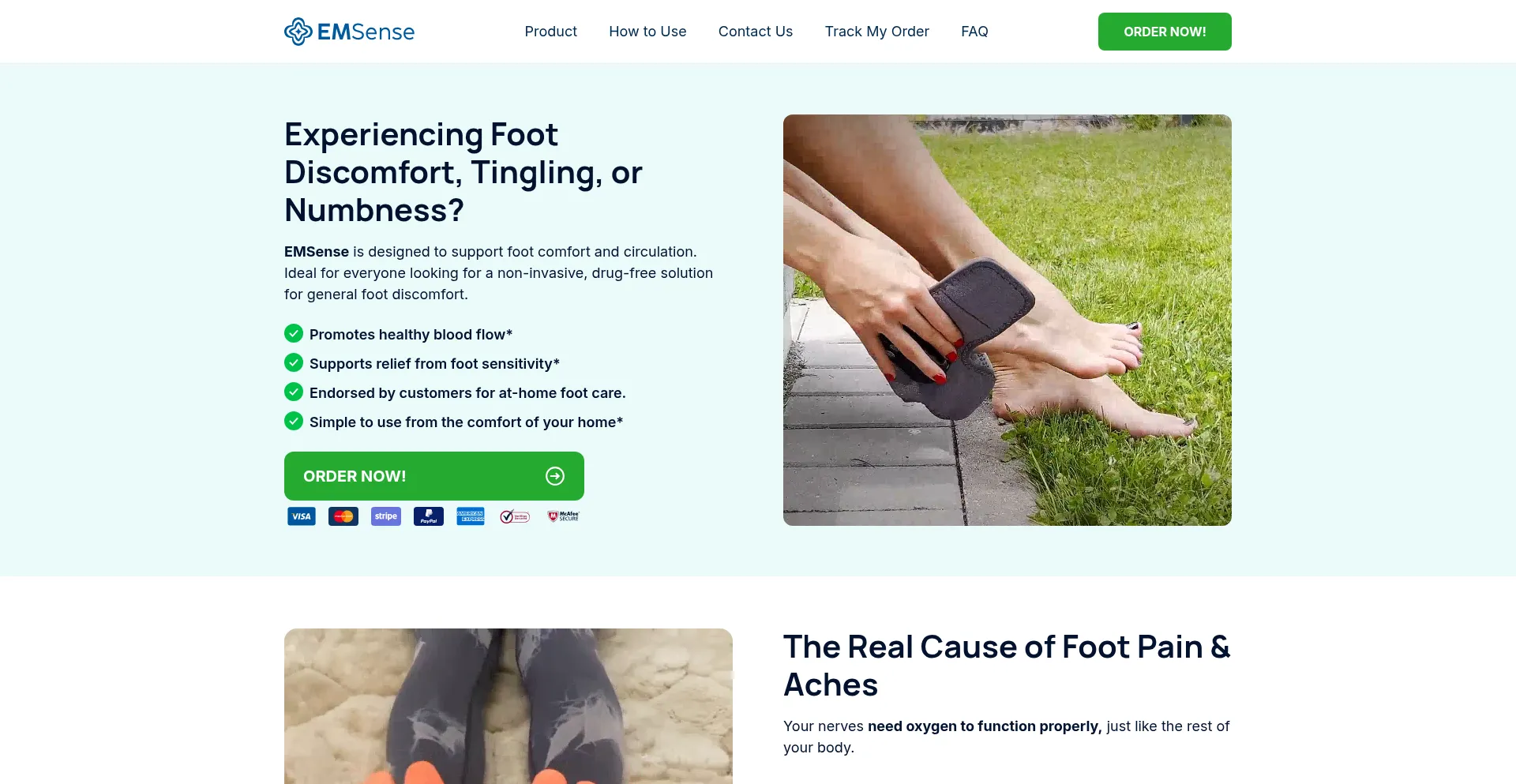 EMSense is a powerful massager that helps relieve foot pain, tingling, burning sensations, and numbness.
