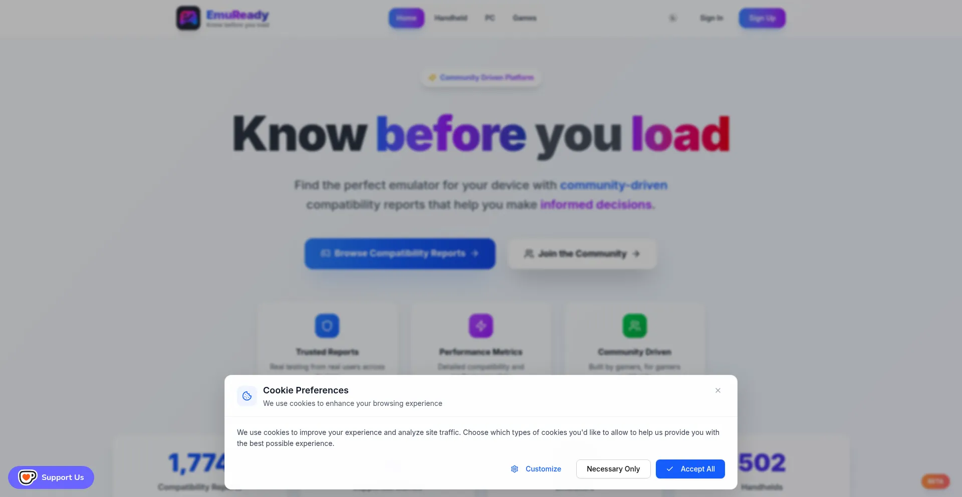 The website implements cookie consent mechanisms in compliance with privacy regulations such as GDPR or CCPA. This demonstrates that emuready.com adheres to data protection standards and provides users with control over personal data collection practices.