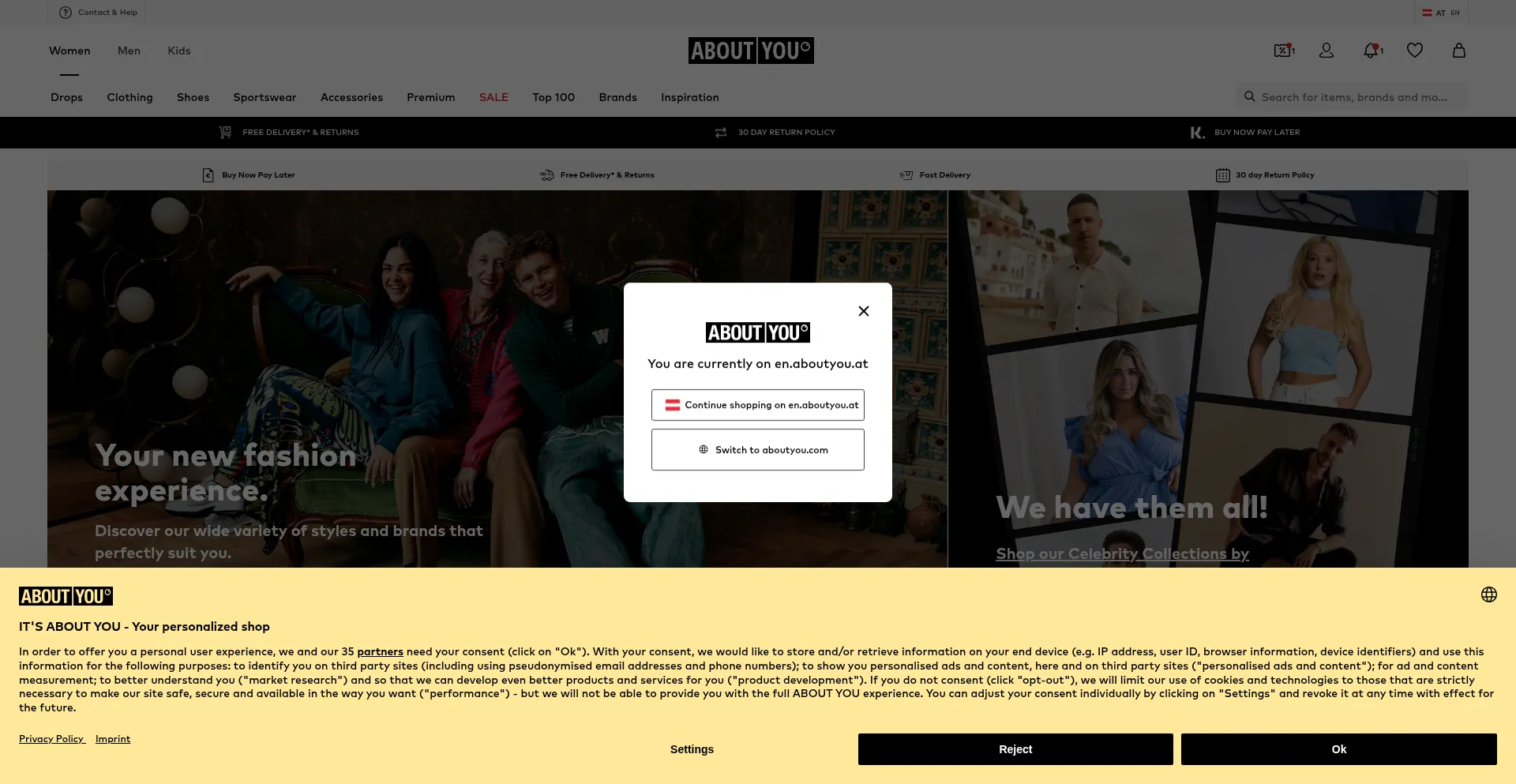 Analysis indicates that en.aboutyou.at operates as an e-commerce platform facilitating online transactions for goods or services. The website implements shopping cart functionality, payment processing systems, and product catalog features typical of commercial retail operations.