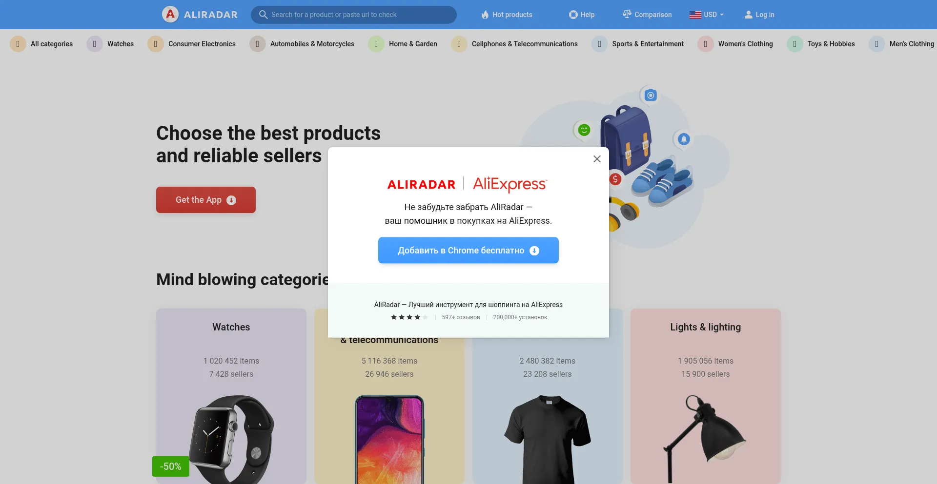 AliRadar - choose and buy a product in online stores, compare prices and find a similar product cheaper or at a discount
