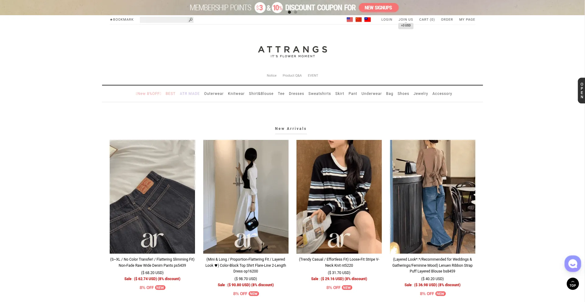 Get your Korean fashion style from online shopping at Attrangs. Shop the latest and trendy tops, tees, blouses, knits, dresses, jackets, bottoms, pants, skirts, leggings, shoes,...