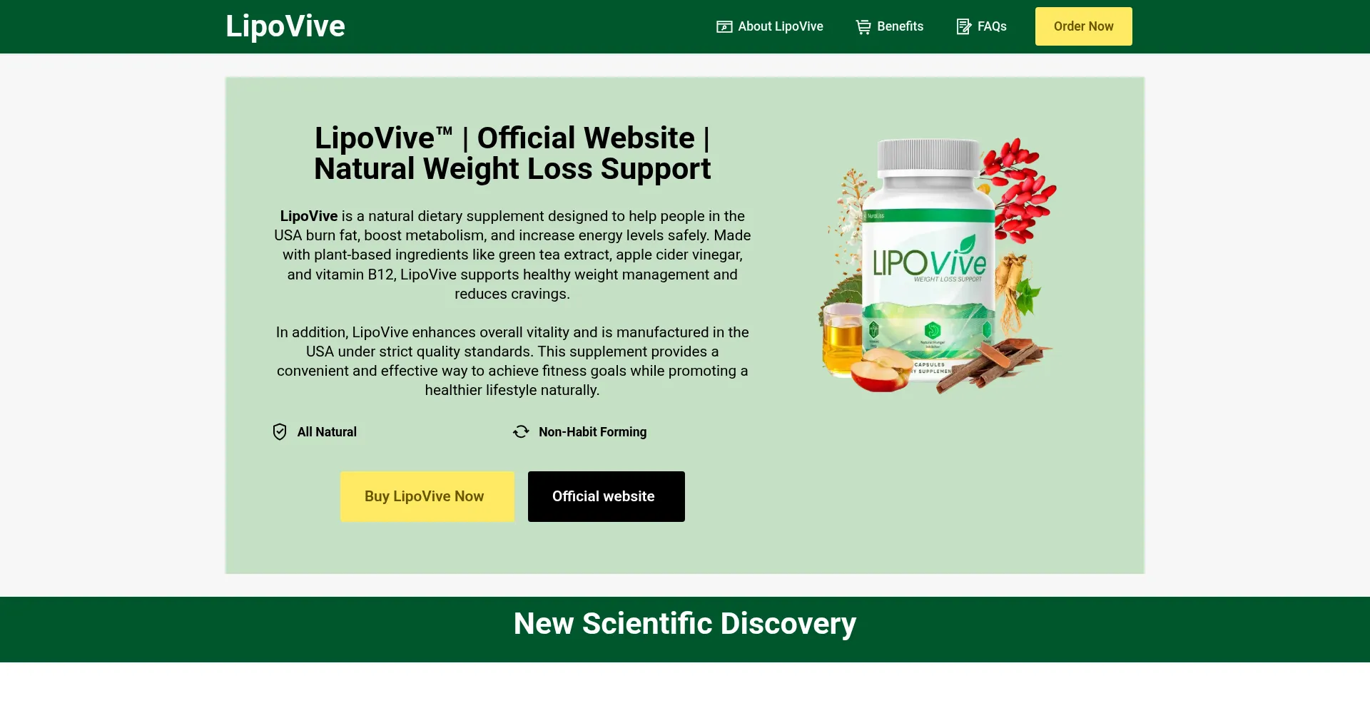 Boost metabolism, burn fat, and increase energy naturally with LipoVive. Safe, plant-based formula for effective weight management in the USA.