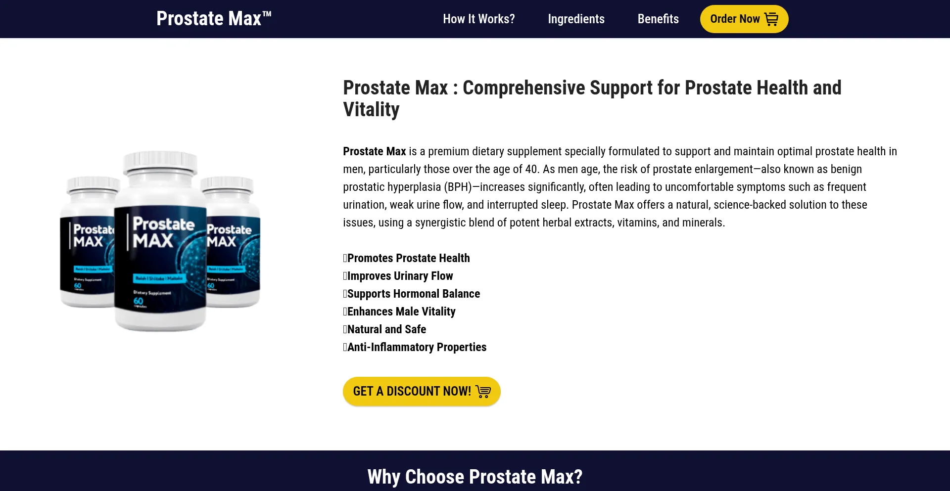 Prostate Max is a scientifically formulated dietary supplement designed to support and maintain optimal prostate health in men, particularly those over the age of 40.