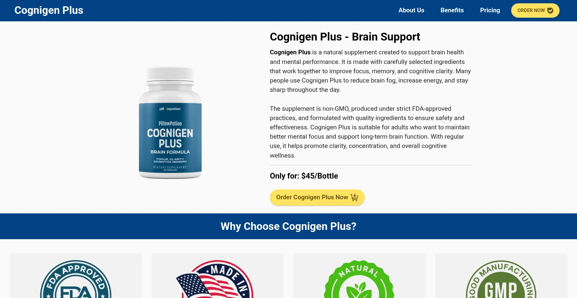 Cognigen Plus is a natural brain supplement that supports focus, memory, mental clarity, and energy while promoting long-term cognitive health safely.