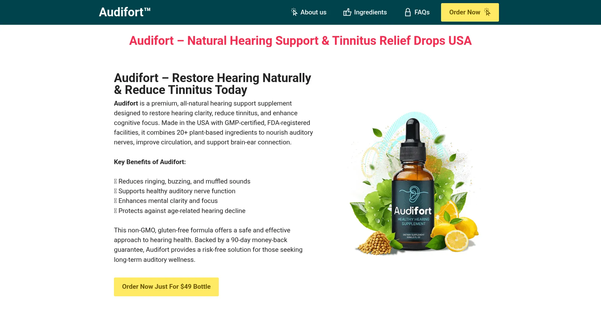 Discover Audifort, the natural hearing support drops. Reduce tinnitus, enhance auditory clarity, and protect ear health with a safe, plant-based formula.