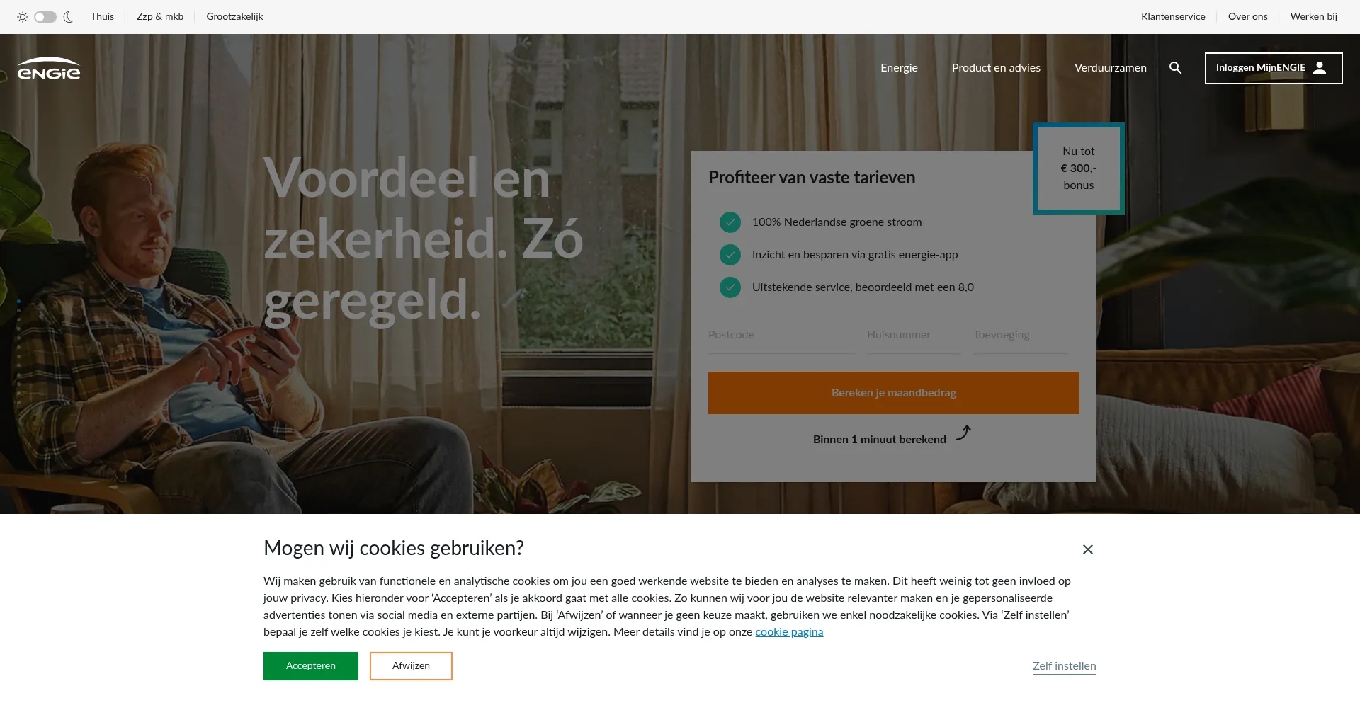 The website implements cookie consent mechanisms in compliance with privacy regulations such as GDPR or CCPA. This demonstrates that engie-energie.nl adheres to data protection standards and provides users with control over personal data collection practices.