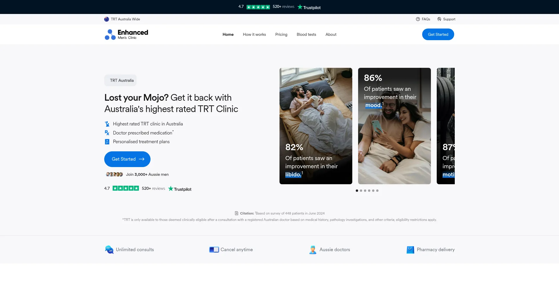 Australia's leading TRT Clinic. Get started with Enhanced Men's Clinic to begin Testosterone Replacement Therapy in Australia. We prescribe TRT Australia wide.
