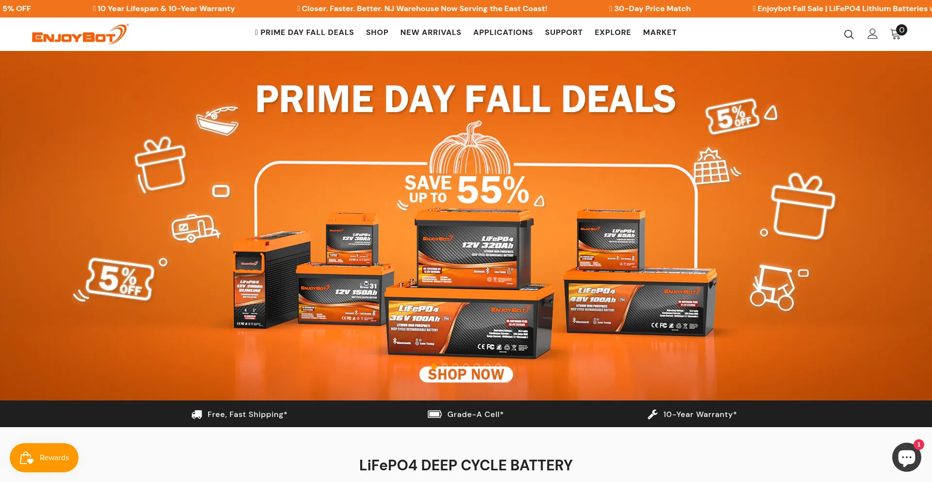 Buy Enjoybot high-quality lithium batteries. Best SLA or AGM replacement. Perfect for Solar Use, Home Backup, RV, Golf Cart, Trolling Motor and Camping. Make your order!