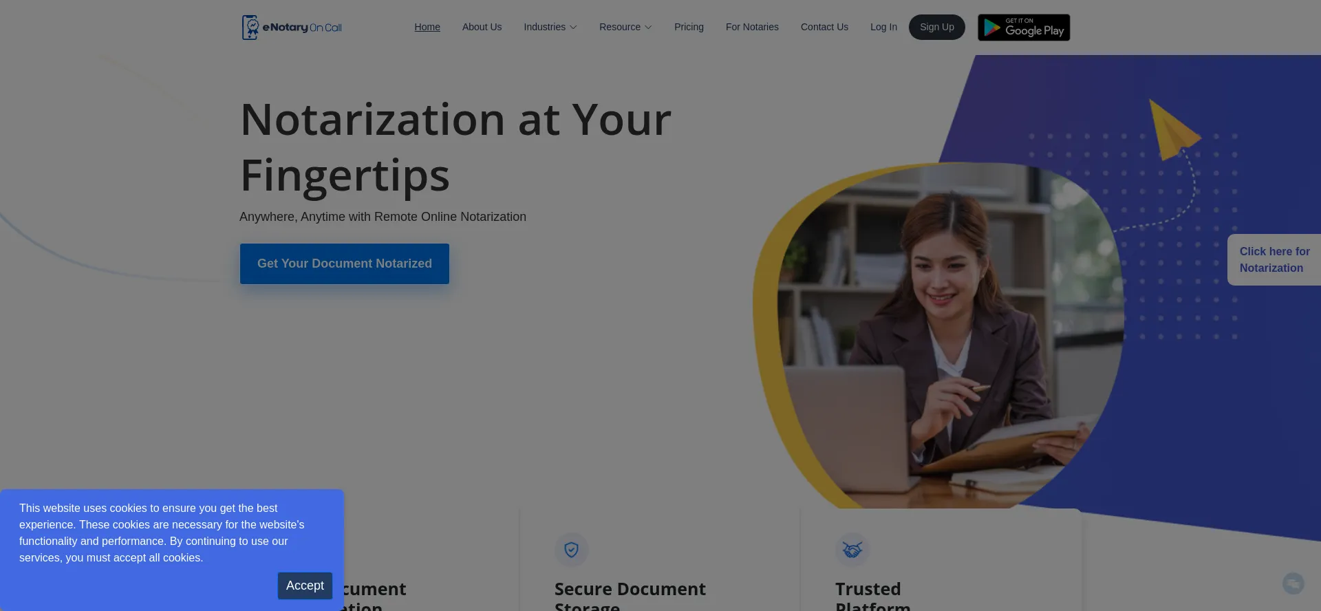The website implements cookie consent mechanisms in compliance with privacy regulations such as GDPR or CCPA. This demonstrates that enotaryoncall.com adheres to data protection standards and provides users with control over personal data collection practices.