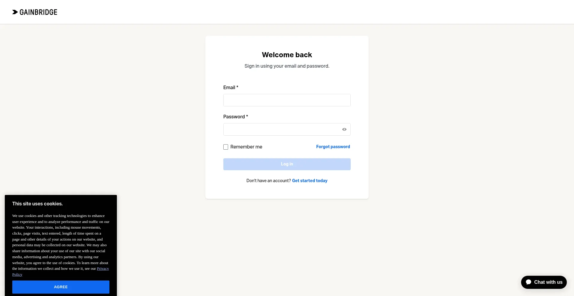 The website implements cookie consent mechanisms in compliance with privacy regulations such as GDPR or CCPA. This demonstrates that enrollment-2.gainbridge.io adheres to data protection standards and provides users with control over personal data collection practices.