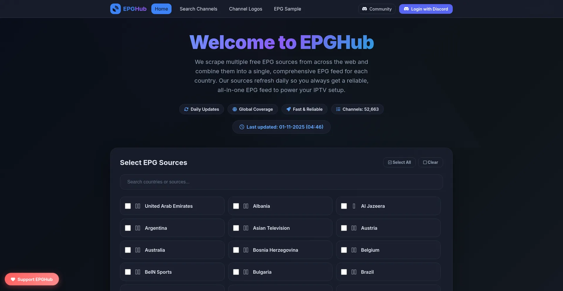 EPGHub provides free, updated IPTV Electronic Program Guide (EPG) sources collected worldwide. Easy to use EPG feeds for your IPTV setup, refreshed daily.