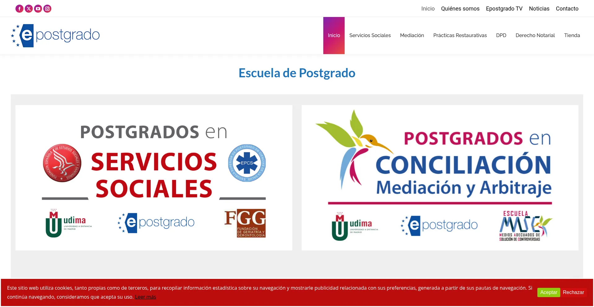 Epostgrado, Escuela de Formación de Postgrado. Cursos Online y Presencial en Servicios Sociales, Gerontología, Mediación y Protección de Datos.