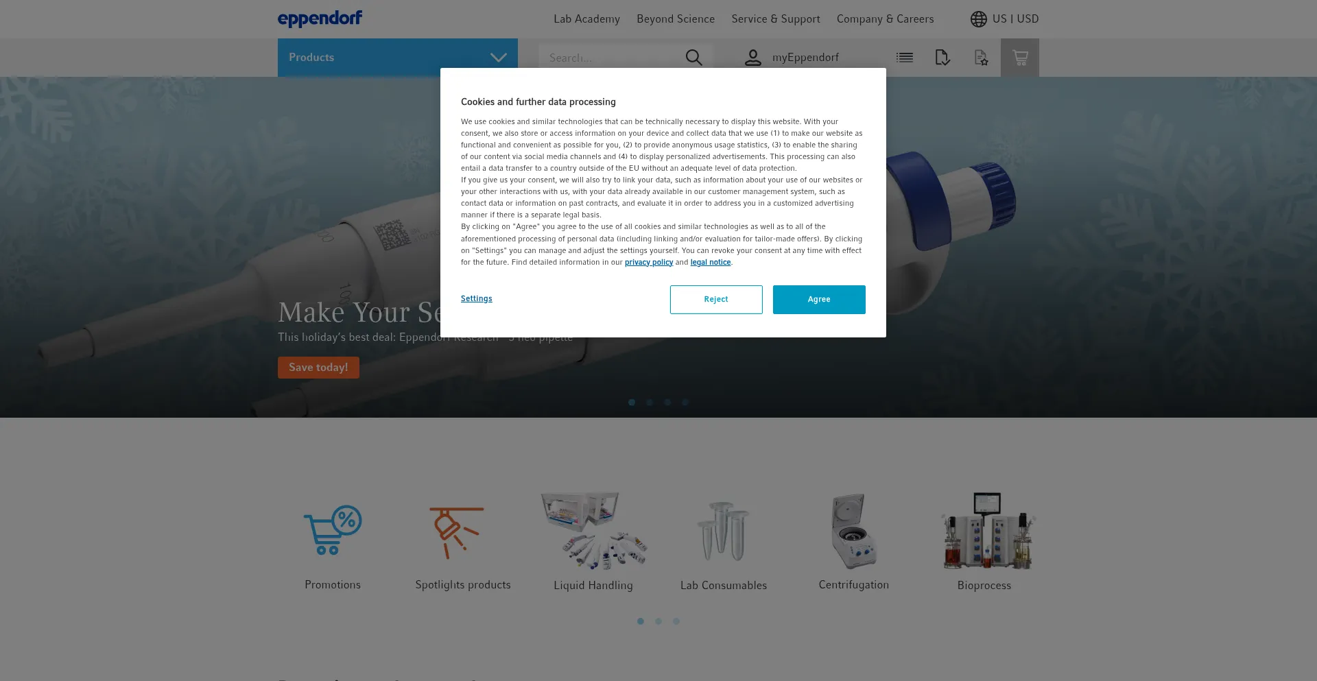 The website implements cookie consent mechanisms in compliance with privacy regulations such as GDPR or CCPA. This demonstrates that eppendorf.link adheres to data protection standards and provides users with control over personal data collection practices.