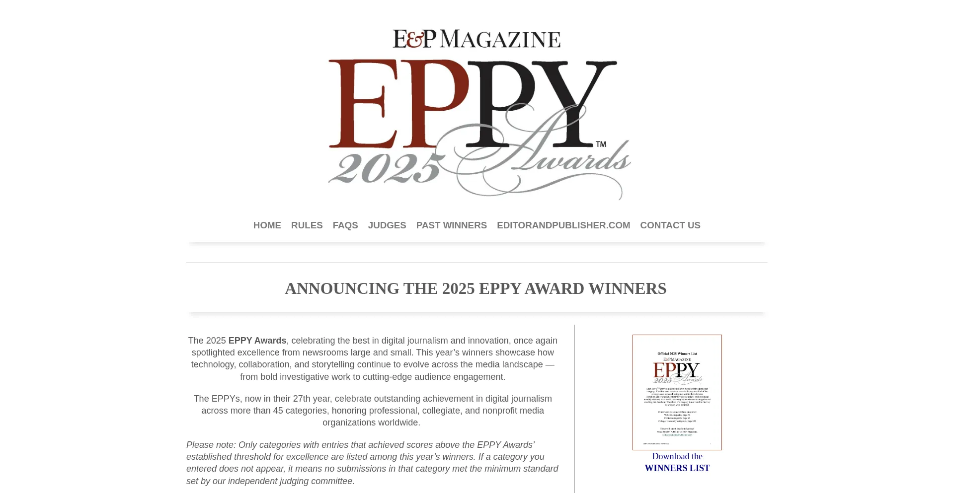 The 2025 EPPY Awards, celebrating the best in digital journalism and innovation, once again spotlighted excellence from newsrooms large and small.