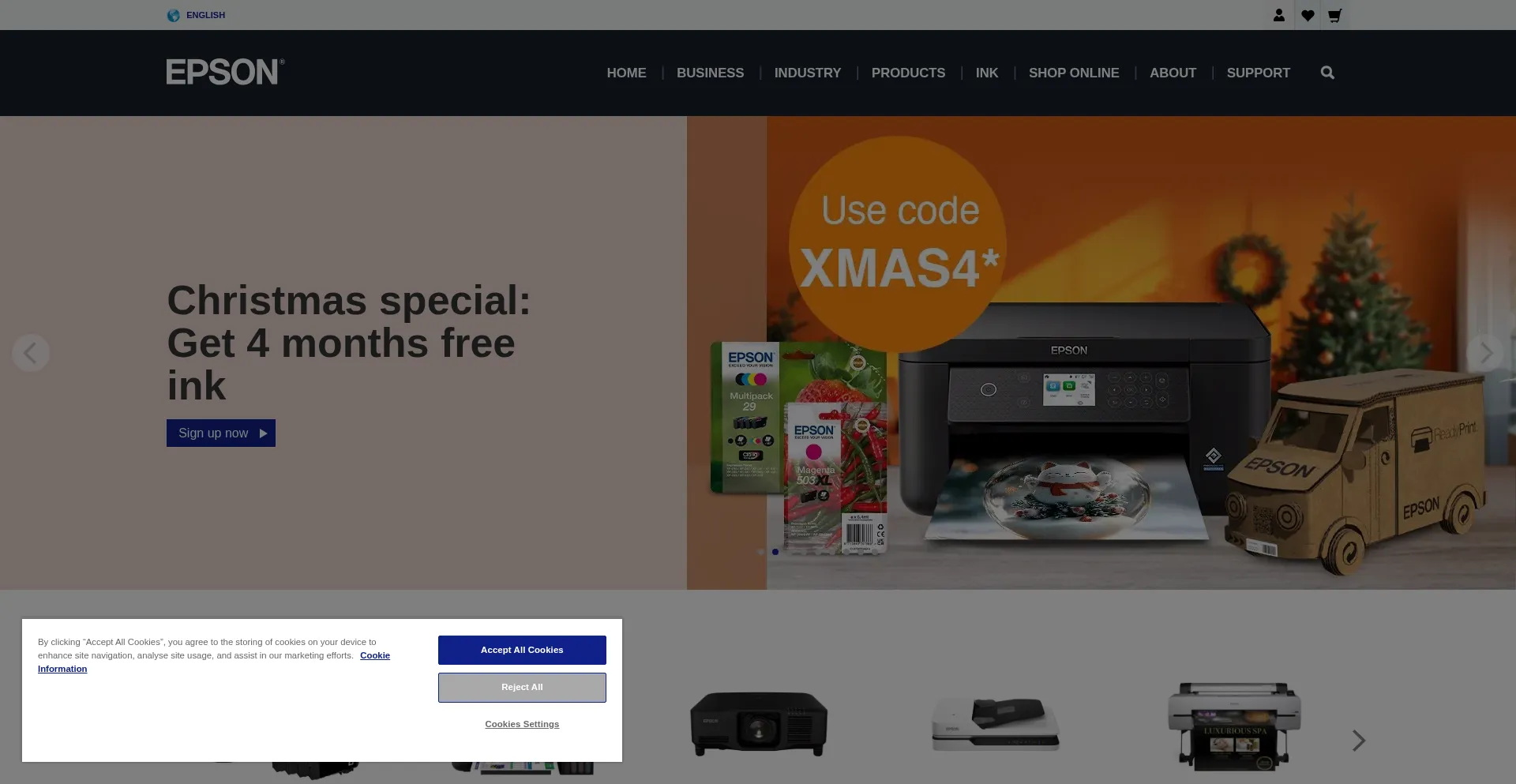 The website implements cookie consent mechanisms in compliance with privacy regulations such as GDPR or CCPA. This demonstrates that epson.co.uk adheres to data protection standards and provides users with control over personal data collection practices.