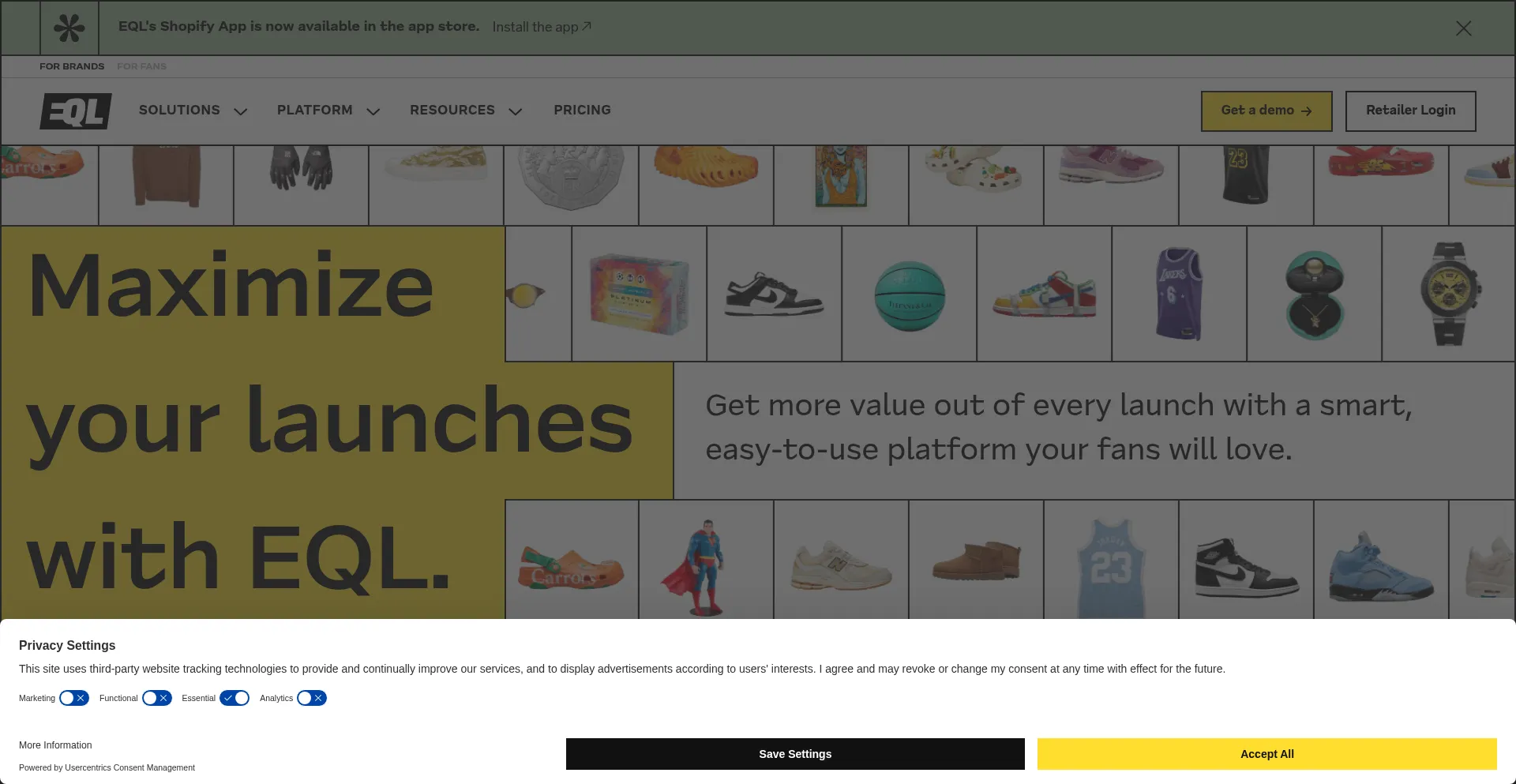 The website implements cookie consent mechanisms in compliance with privacy regulations such as GDPR or CCPA. This demonstrates that eql.com adheres to data protection standards and provides users with control over personal data collection practices.
