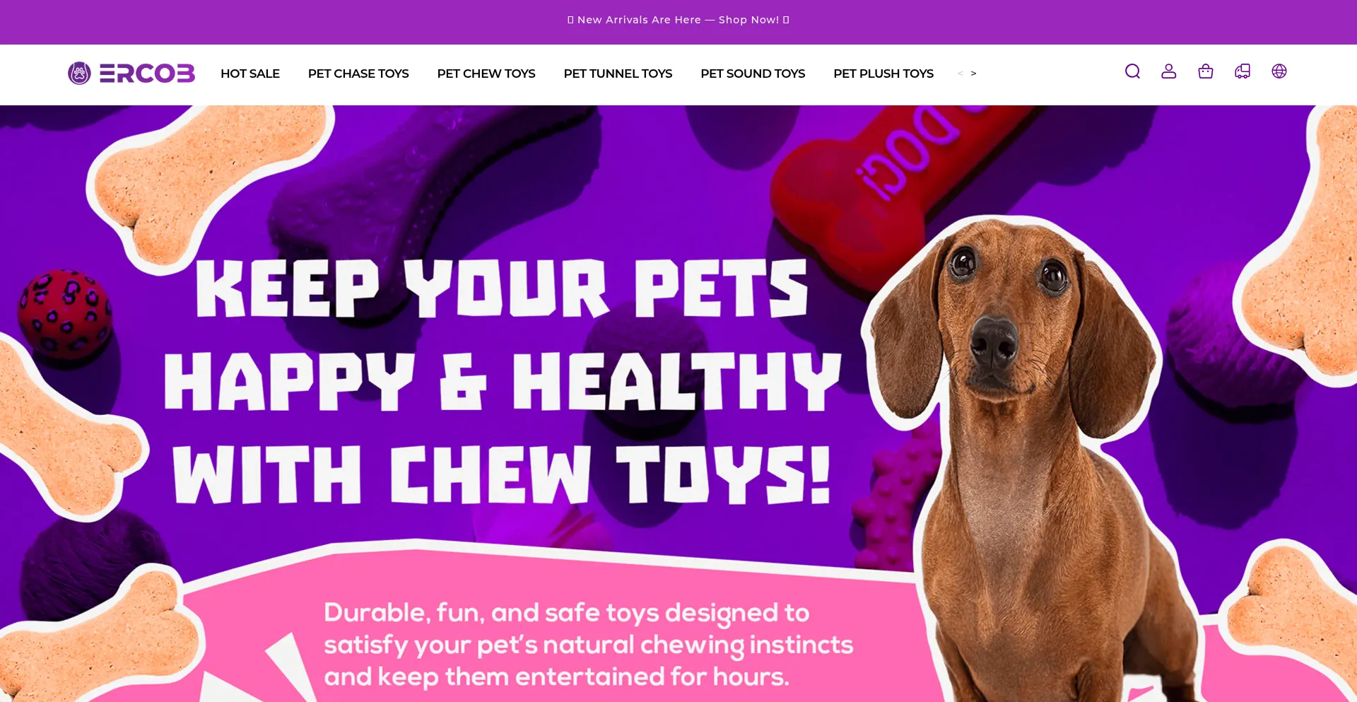 Discover ERCOB — your trusted brand for safe, durable, and fun pet toys. From interactive chase toys to chew, sound, tunnel, and plush collections, we design every toy to spar...