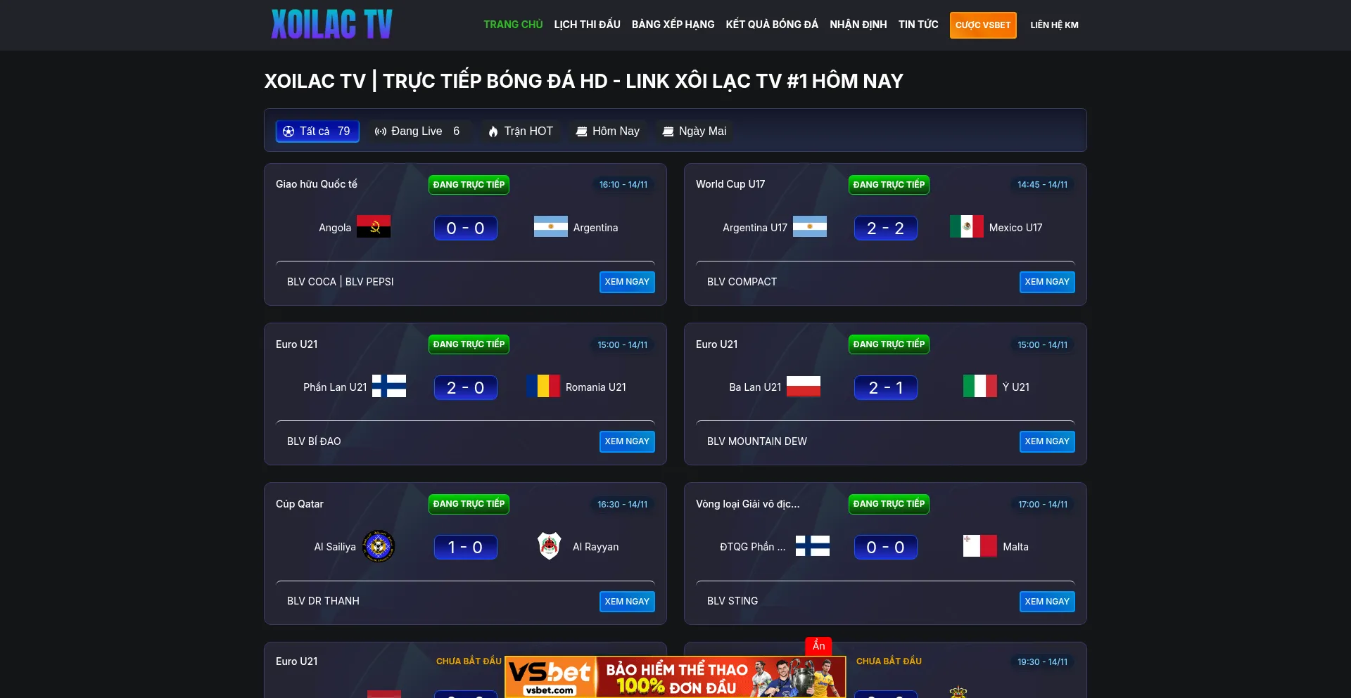 Xoilac TV trực tiếp bóng đá HD hàng đầu Việt Nam, đường truyền ổn định, đa dạng link trực tuyến, đa dạng giải đấu, BLV chuyên môn cao v�...