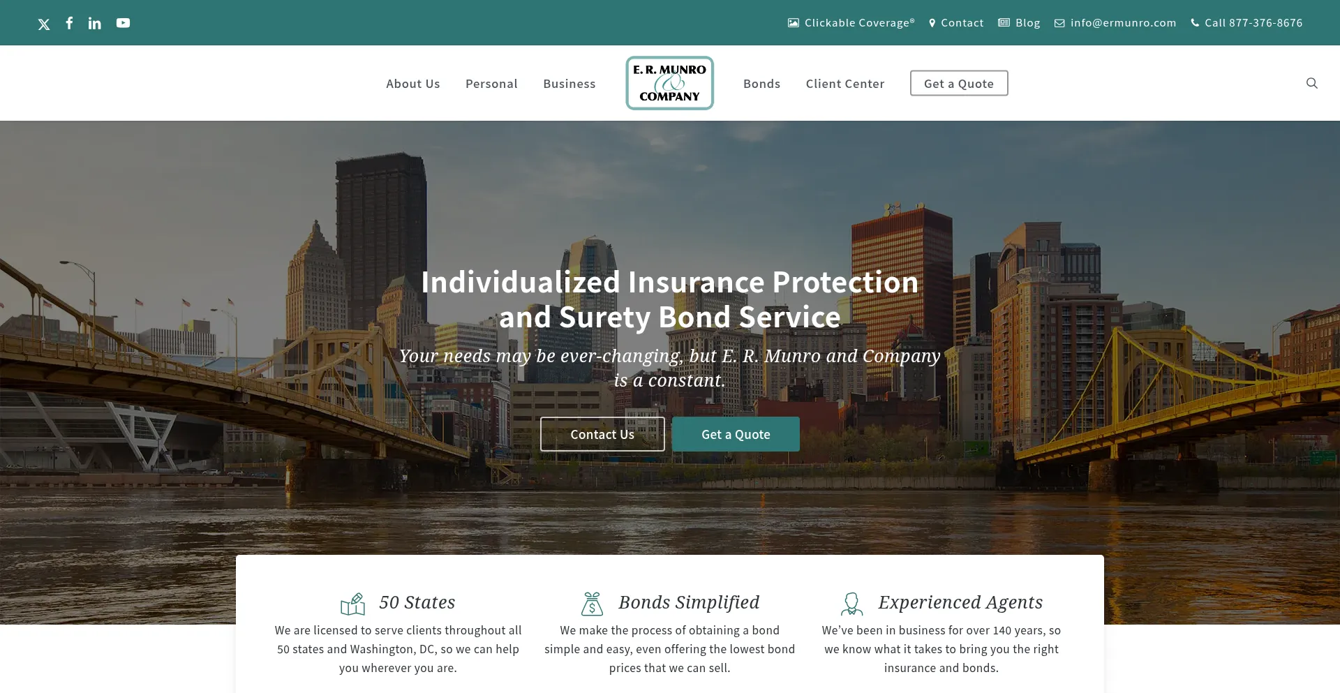 E. R. Munro and Company offers a range of insurance and bond solutions to meet the needs of clients in all 50 states and Washington, DC.