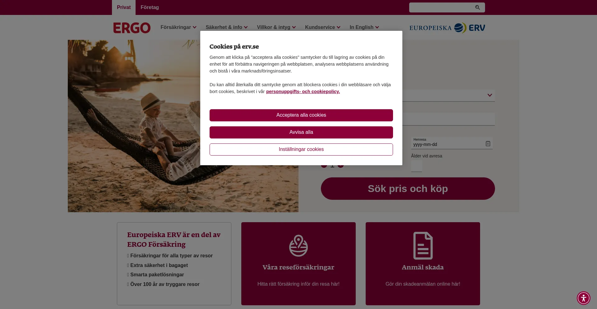 Reseförsäkring för privatpersoner | Europeiska ERV