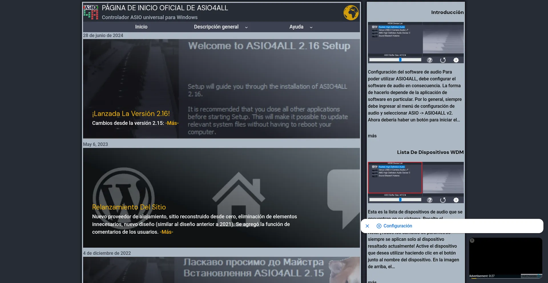 Inicio oficial de ASIO4ALL: controlador ASIO universal para Windows