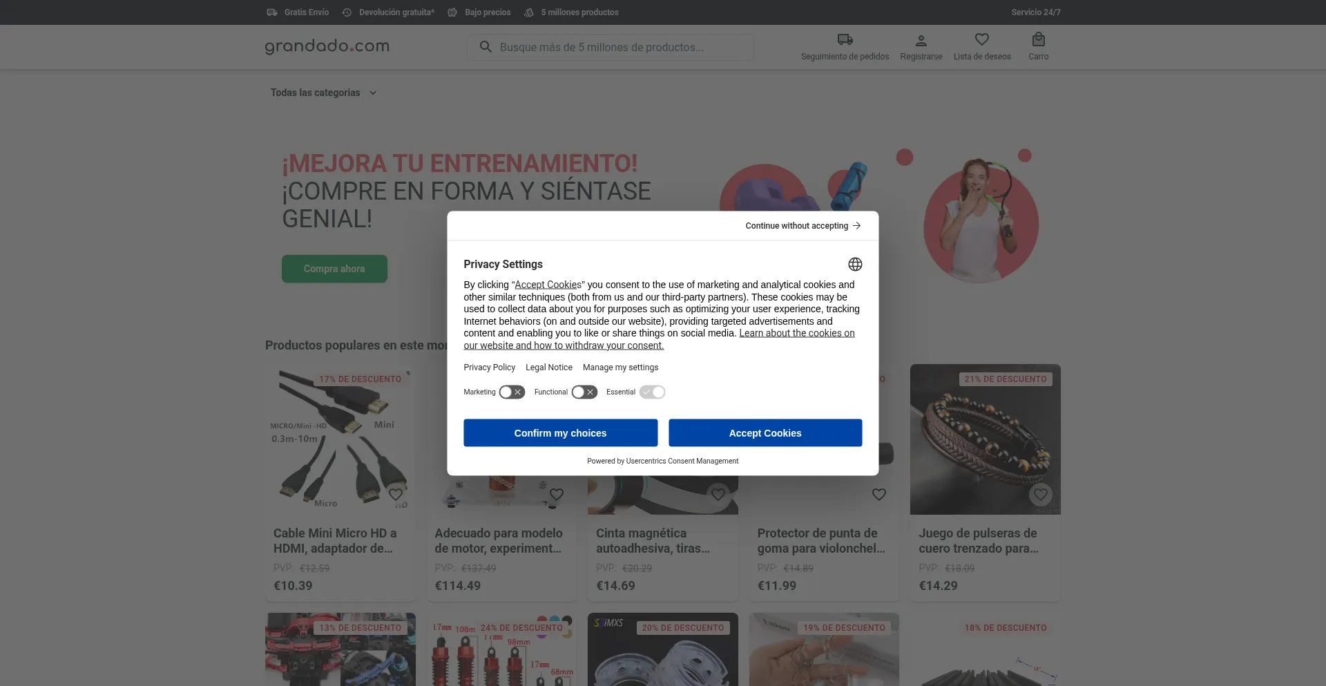 The es.grandado.com website uses Google Tag Manager to add and update tracking tags on its website.