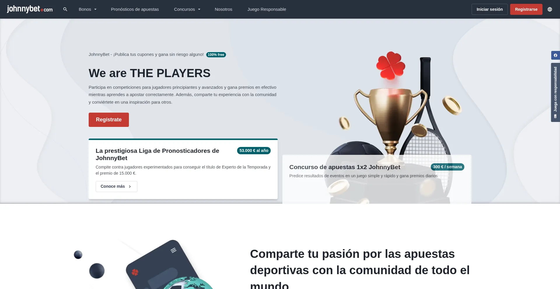JohnnyBet es una plataforma de entretenimiento virtual. Torneos de apuestas deportivas, eSports, casino y poker de la mejor manera posible y en un solo lugar. Conoce más y form...