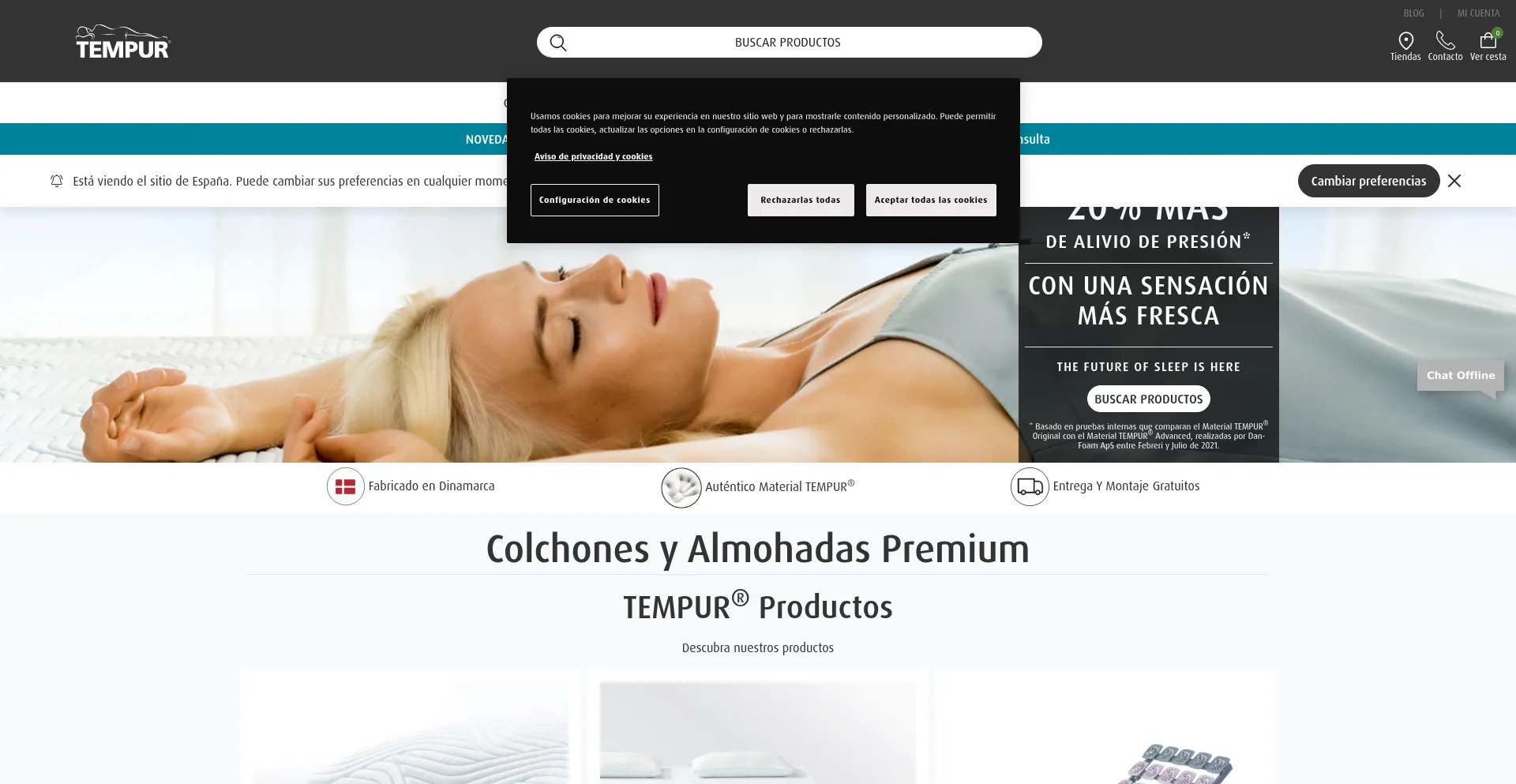 The website implements cookie consent mechanisms in compliance with privacy regulations such as GDPR or CCPA. This demonstrates that es.tempur.com adheres to data protection standards and provides users with control over personal data collection practices.