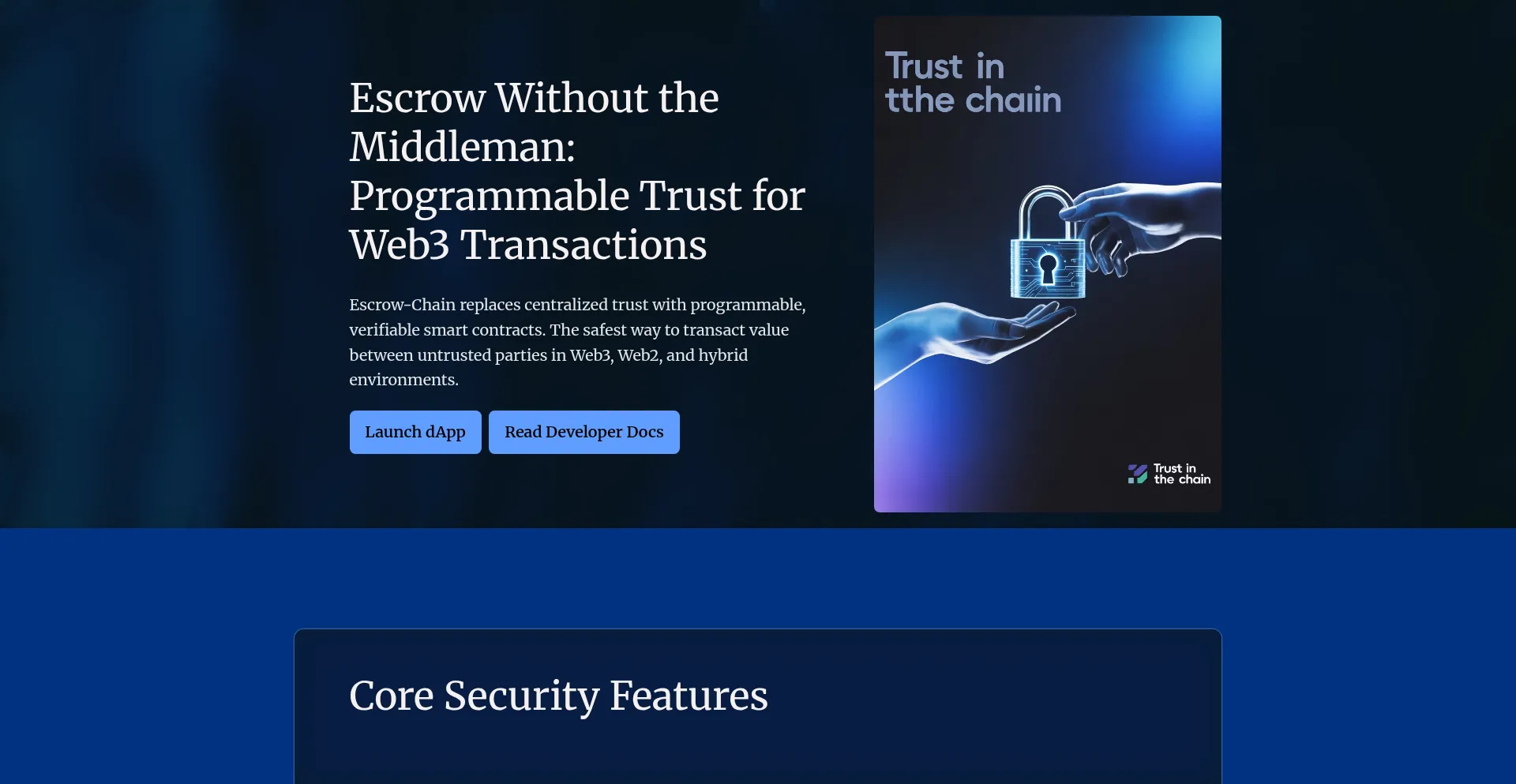 Escrow-Chain replaces centralized trust with programmable, verifiable smart contracts. The safest way to transact value between untrusted parties in Web3, Web2, and hybrid envir...
