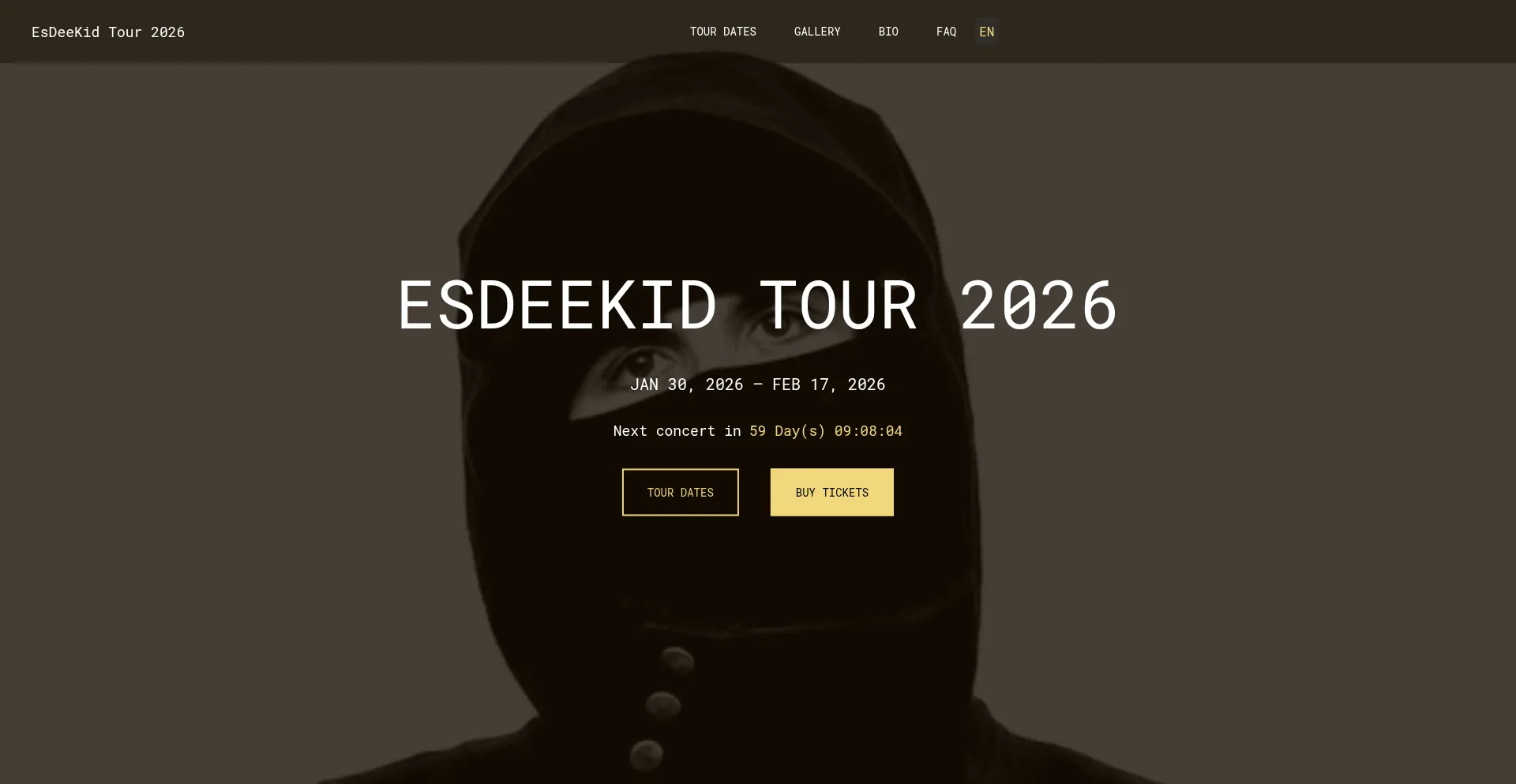 EsDeeKid Tour 2026 - Concert Dates & Tickets