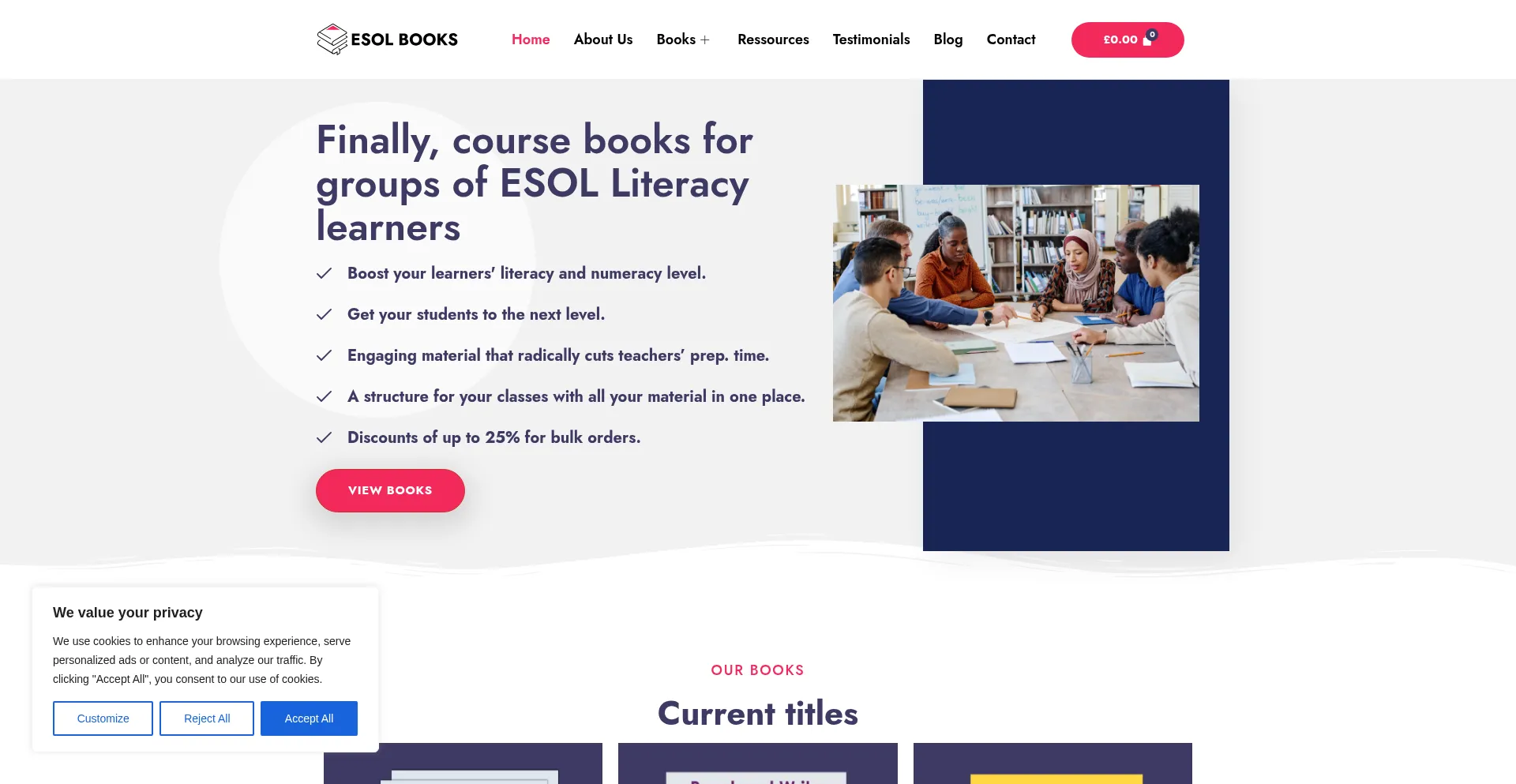 The website implements cookie consent mechanisms in compliance with privacy regulations such as GDPR or CCPA. This demonstrates that esolbooks.com adheres to data protection standards and provides users with control over personal data collection practices.