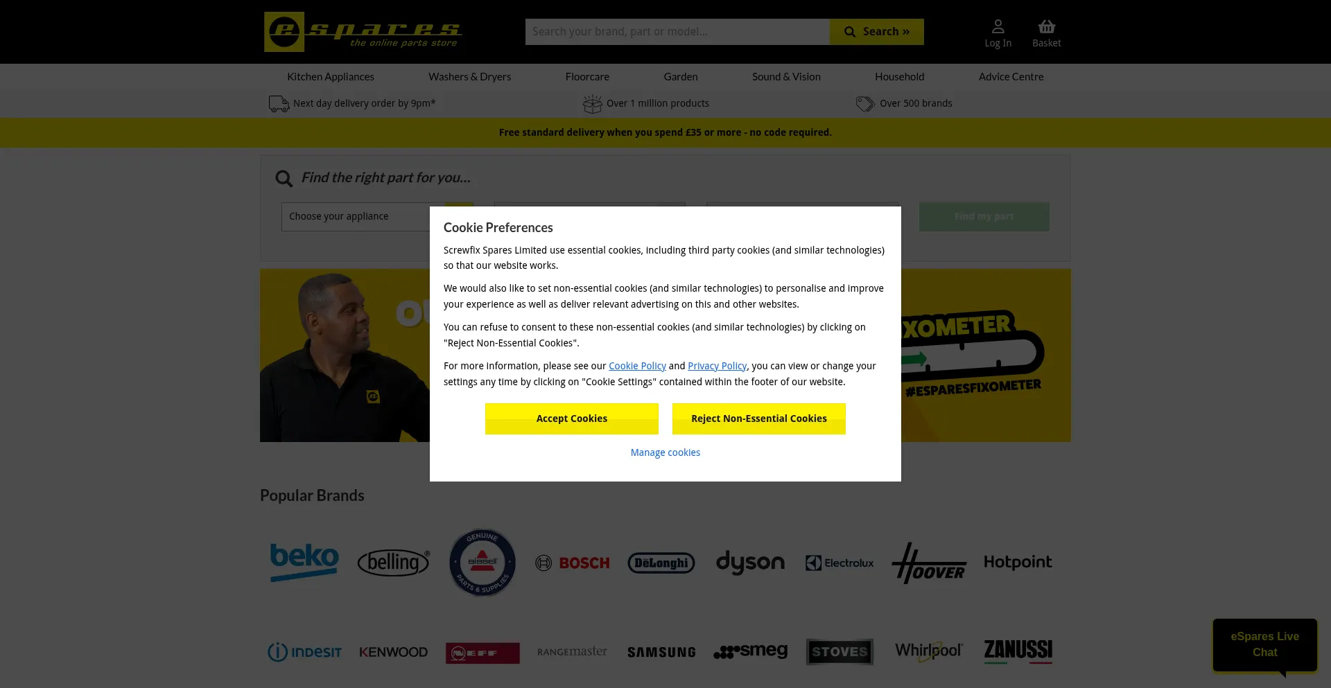 Fix your appliances with eSpares! Shop genuine and high-quality spare parts for cookers, washing machines & more from Dyson, Samsung, Beko & Bosch. Next day delivery available
