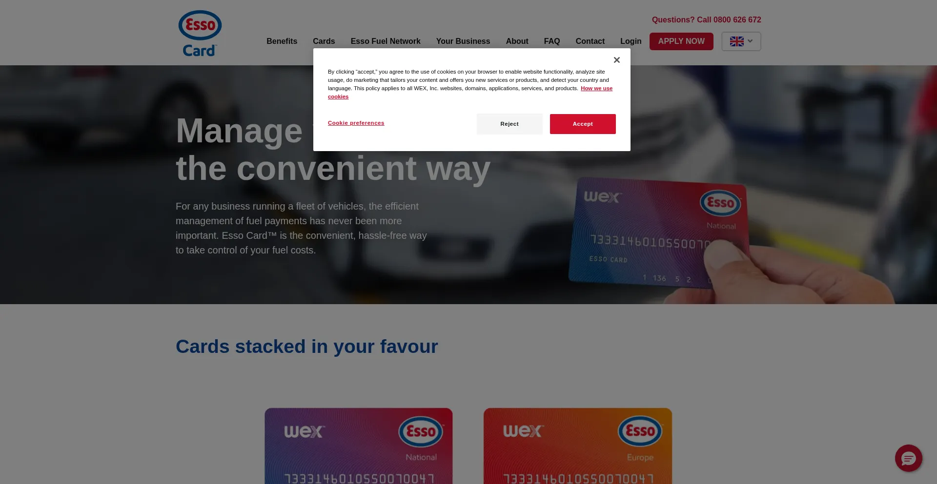 Esso Card™ is a leading provider of fuel cards offering savings on fuel to small business, fleets and hauliers in the UK & Europe. Apply online today.