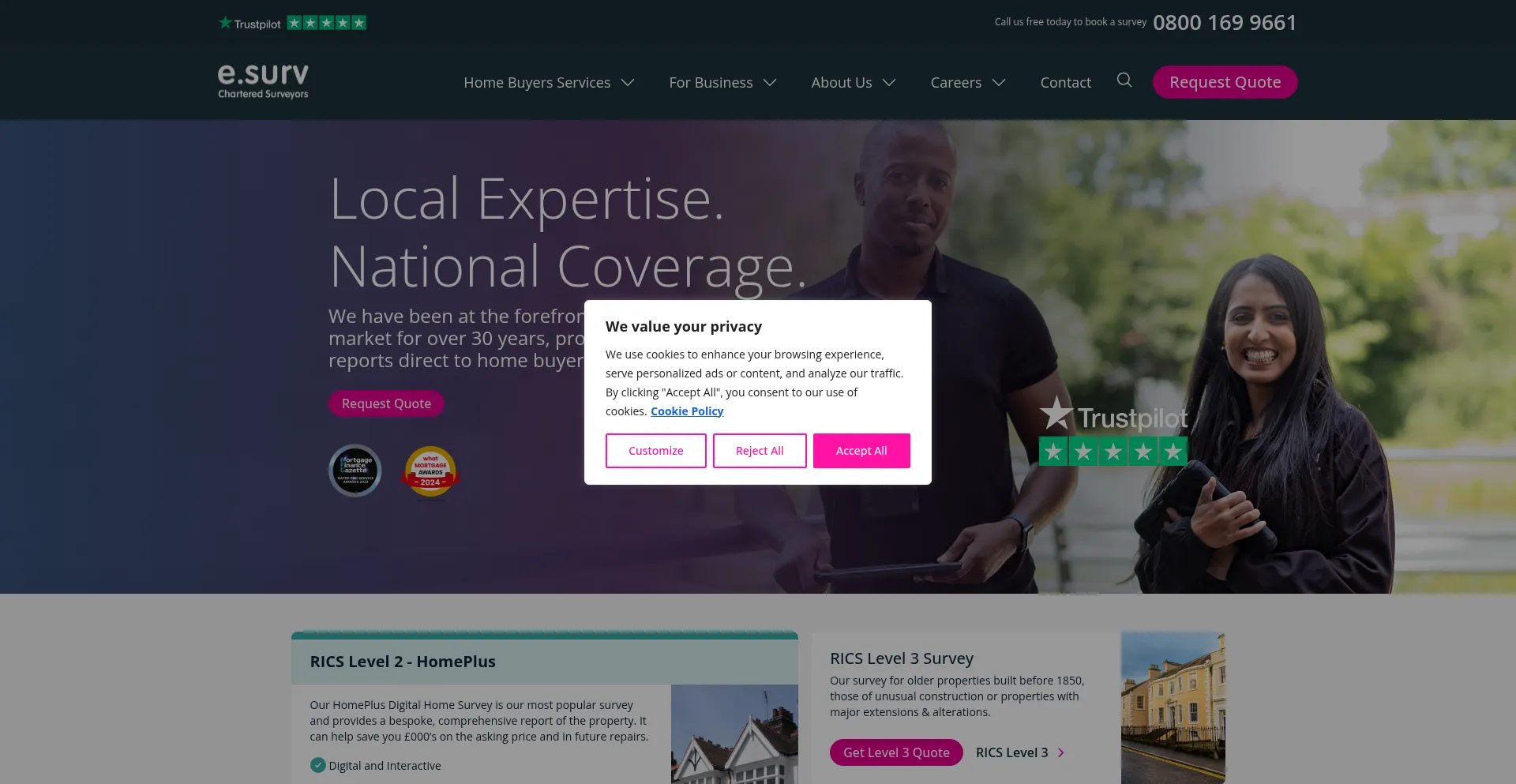 The website implements cookie consent mechanisms in compliance with privacy regulations such as GDPR or CCPA. This demonstrates that esurv.co.uk adheres to data protection standards and provides users with control over personal data collection practices.