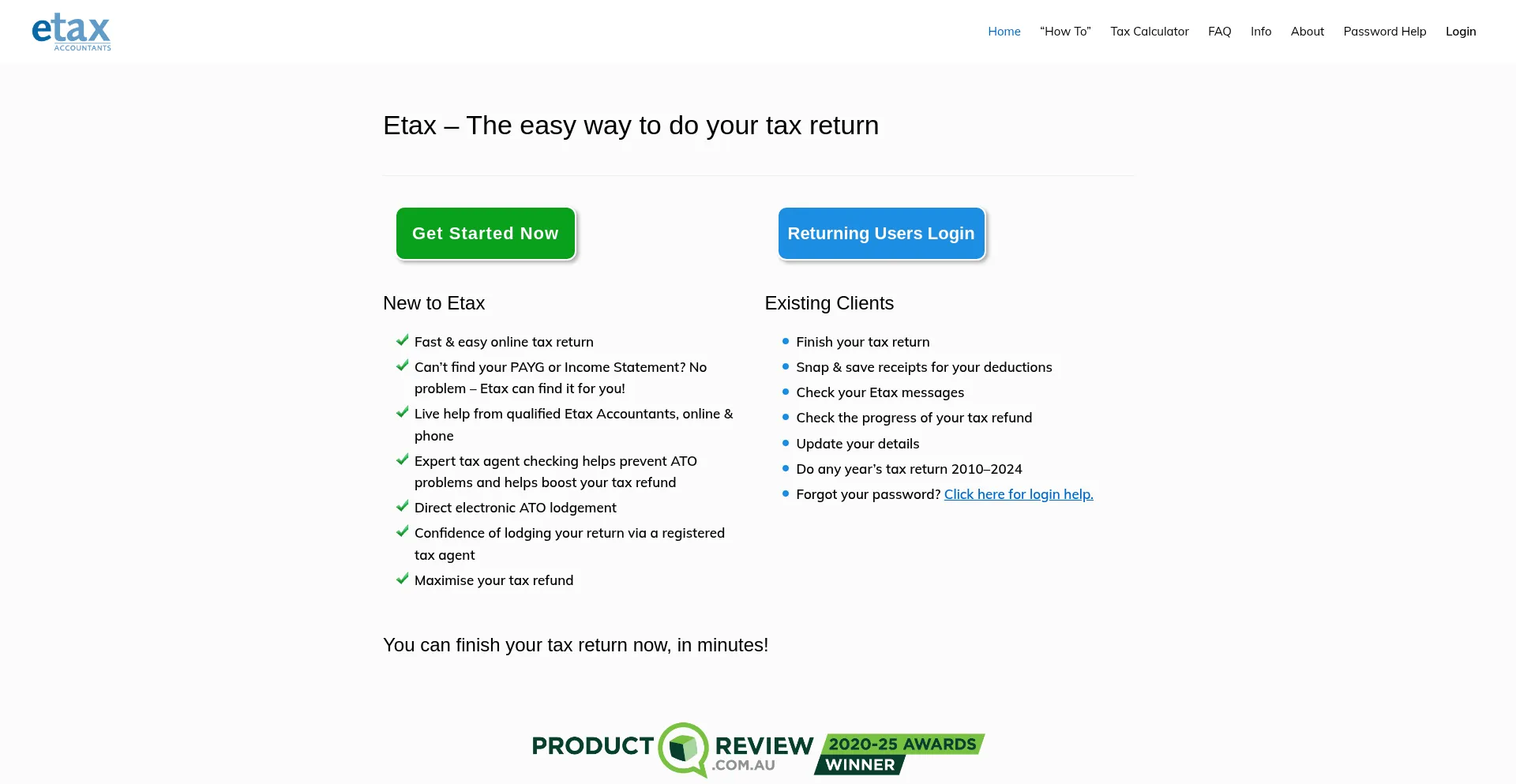 Etax is Australia's top-rated tax return service. Automatic prefill & live chat with friendly accountants help boost your tax refund & get it done right.
