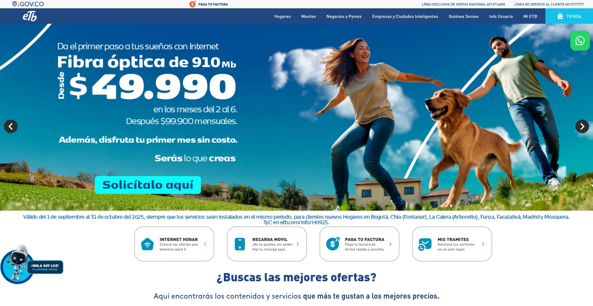 Planes de Internet, Telefonía| ETB Hogar Fibra Óptica