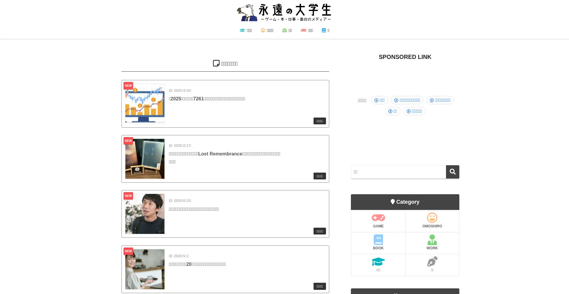 永遠の大学生|ゲーム・マダミスのブログ | 本・小説・おもしろ・仕事・ゲームの総合メディア