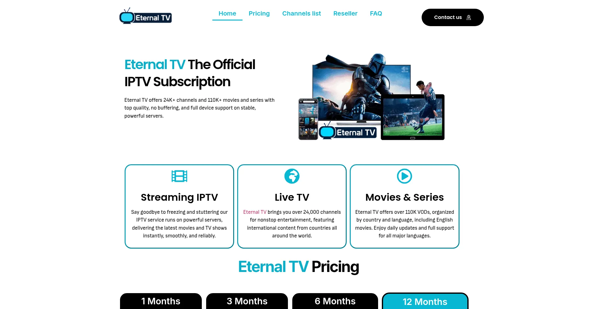 Eternal TV offering 24,000+ live channels and 110,000+ movies and shows. With global content, top-quality streaming, and full device support.