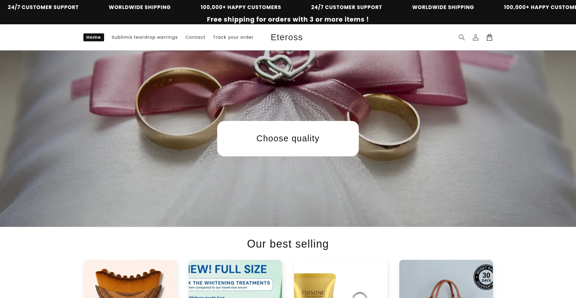 Our analyzer determines that website eteross.com is using Shopify CMS. Shopify is a popular e-commerce platform, powering around 4.4% of websites globally.