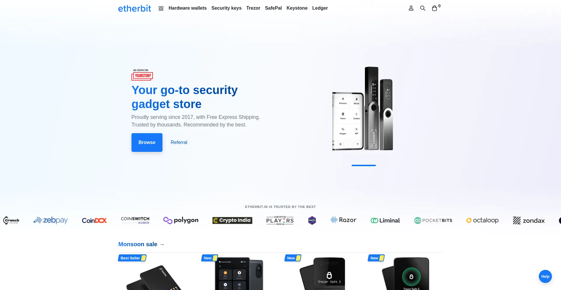 Etherbit.in is an Indian security & self-custody company, operating since 2017. Buy and discover best products with confidence from official partner of Ledger, Trezor, SafePal, ...