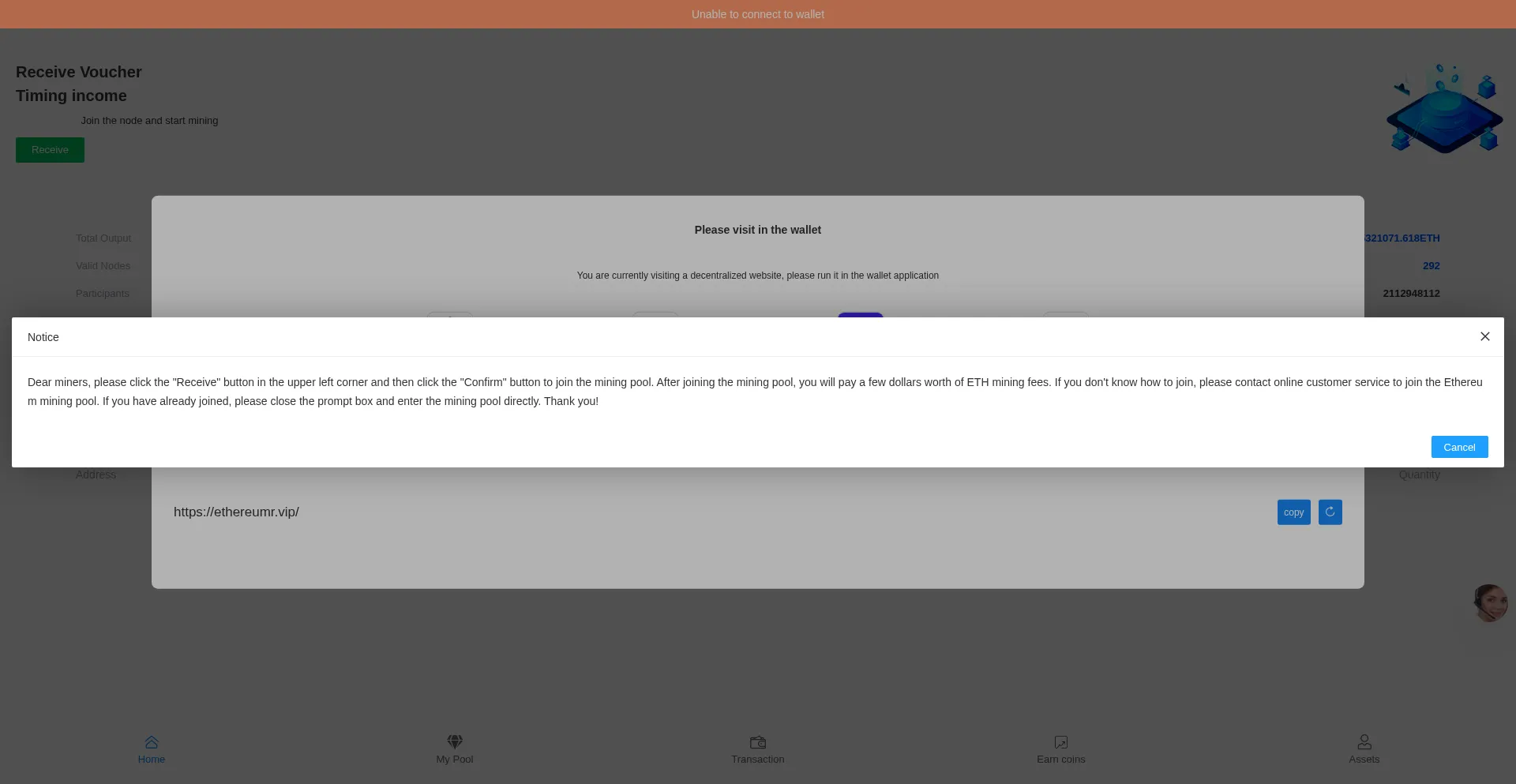 The ethereumr.vip probably offers cloud mining services or cryptocurrency mining investments. Some platforms provide legitimate mining rental services, while others may use fake mining dashboards to display virtual earnings that cannot be withdrawn.