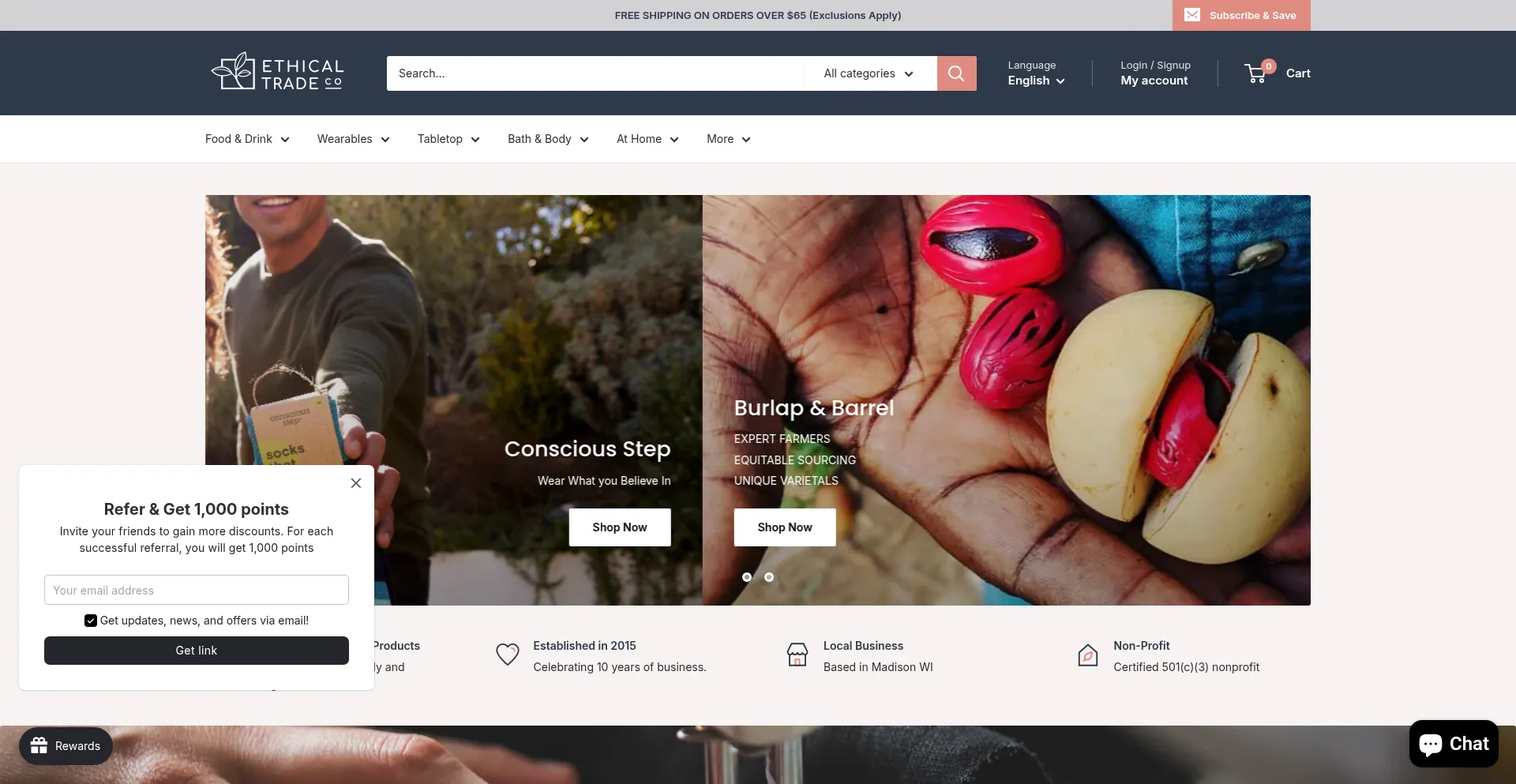 With more than 2,000 ethically sourced products, Ethical Trade Co. is a marketplace for eco-conscious, sustainable, and fair-trade products from around the globe.