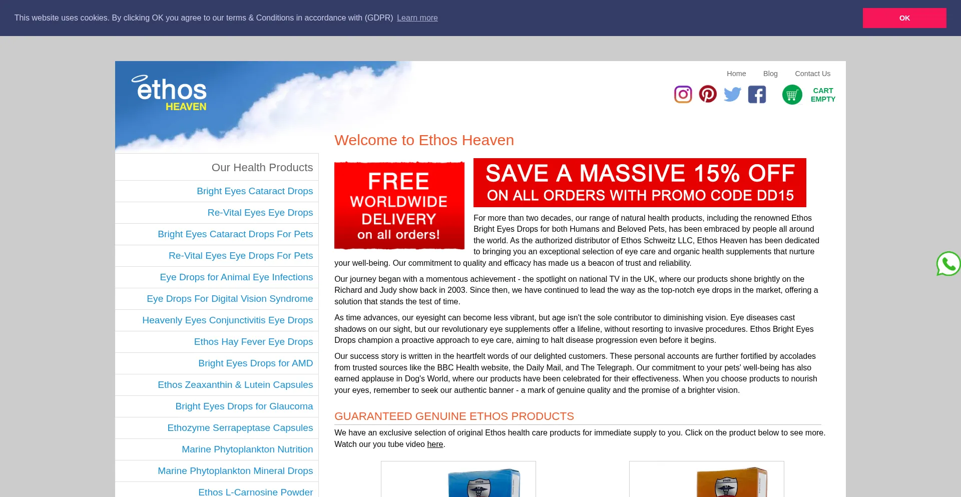 Ethos Heaven - the authorised reseller of the Ethos range of health care products including Bright Eyes Eyedrops for Cataracts as seen on the Richard and Judy Show.